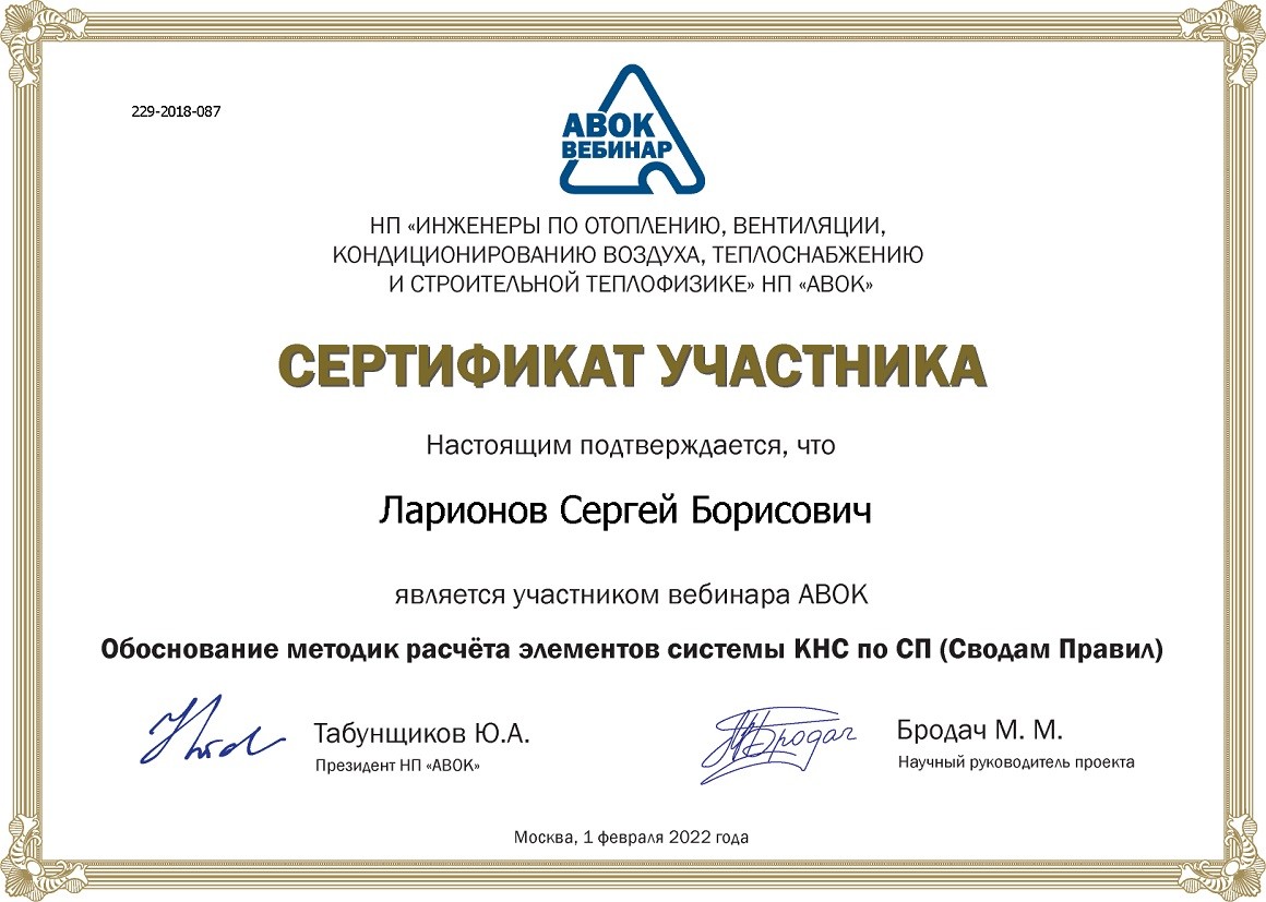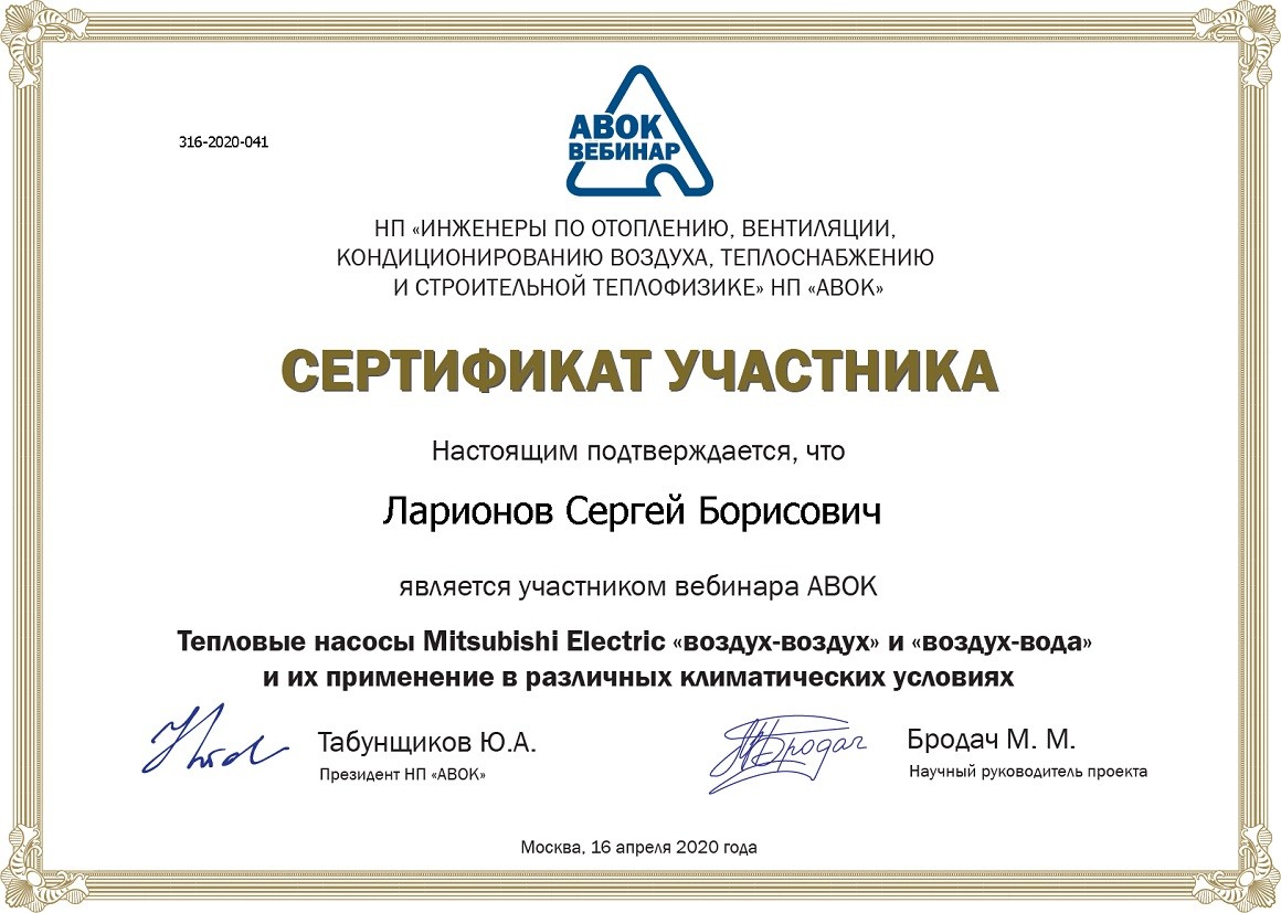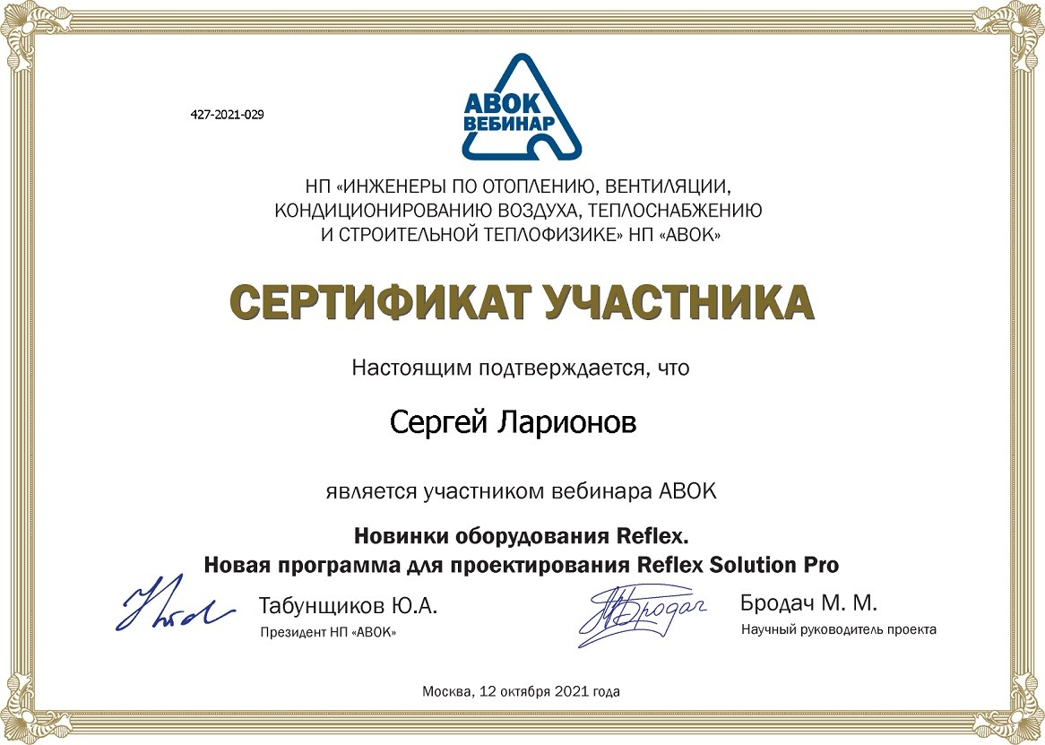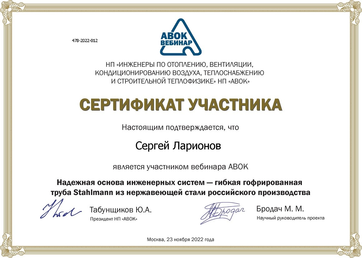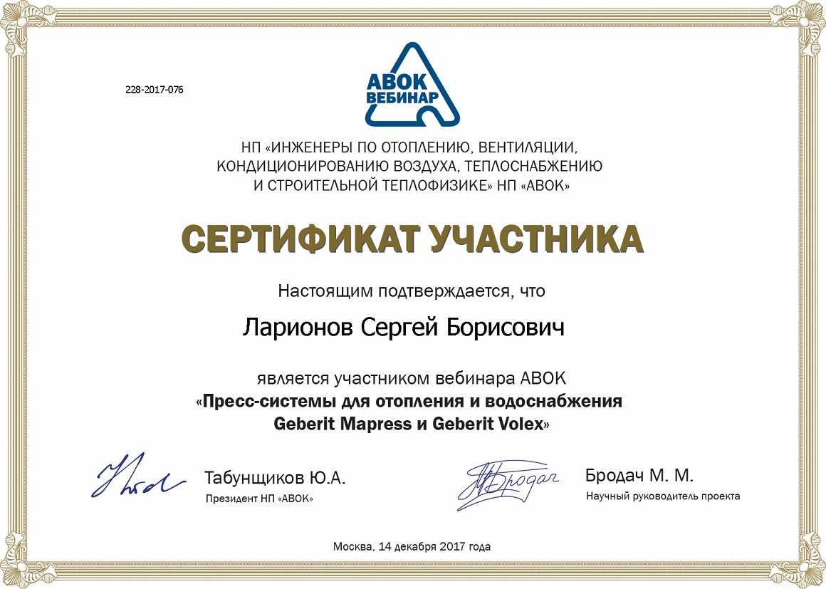 Сертификат обучения по применению антифризов в системах отопления и вентиляции