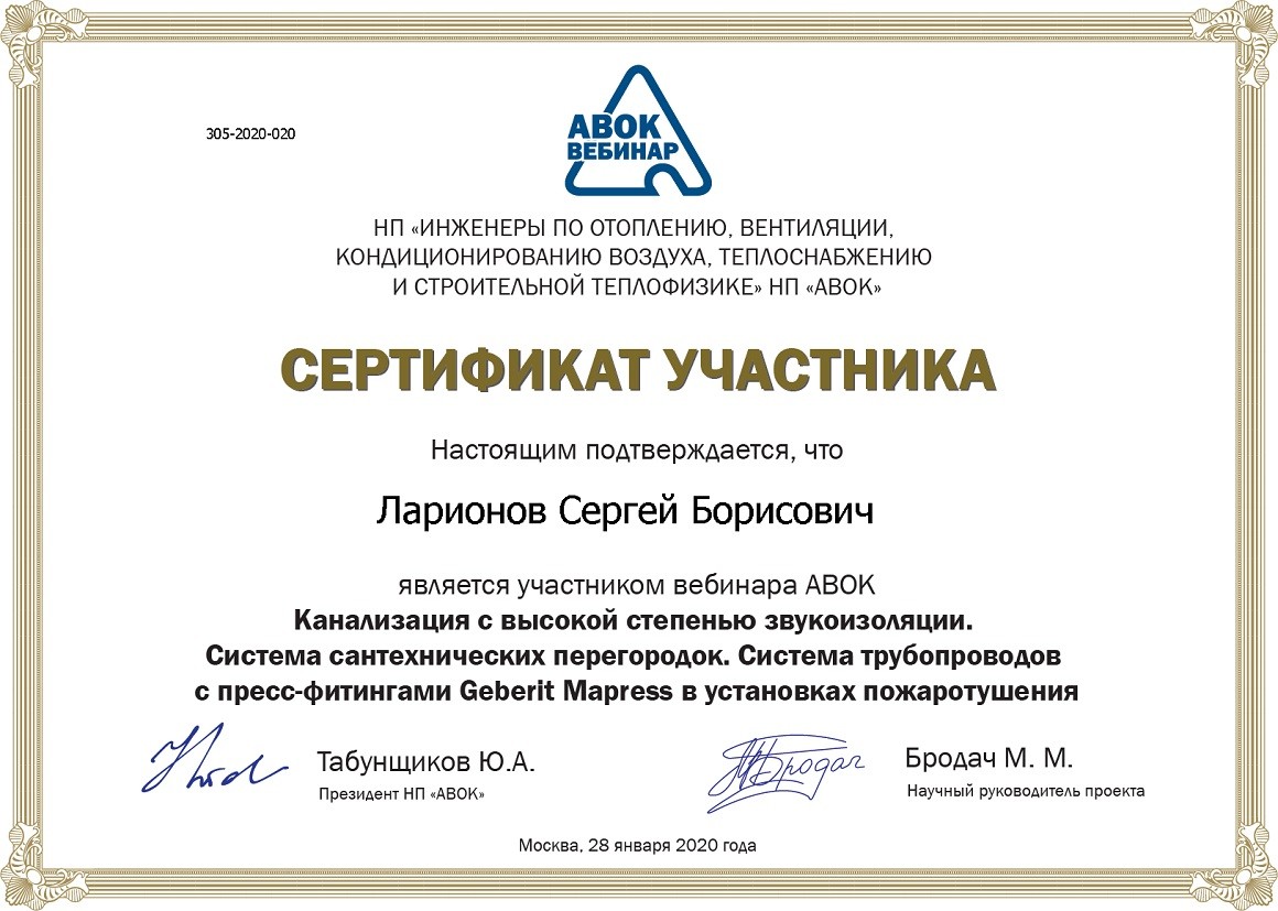 Свидетельство обучения по монтажу внутренних инженерных систем Rehau