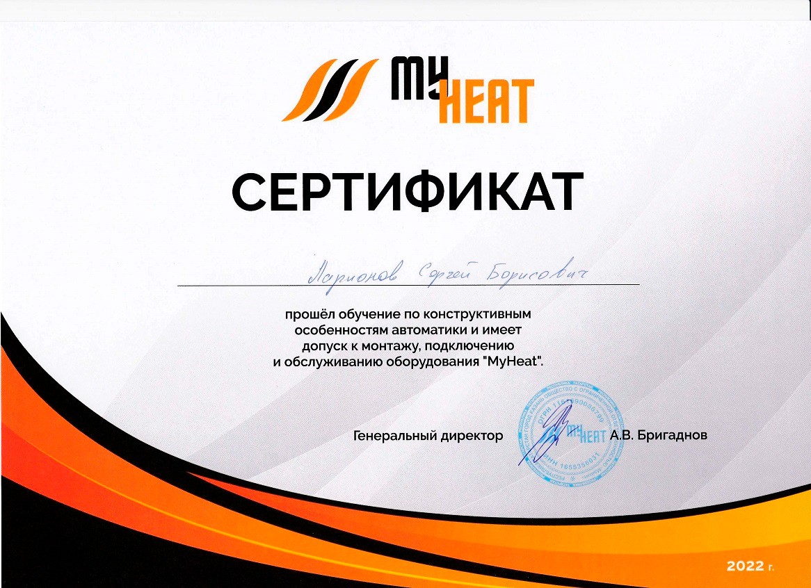Сертификат обучения по настройке и управлению котлами Kiturami