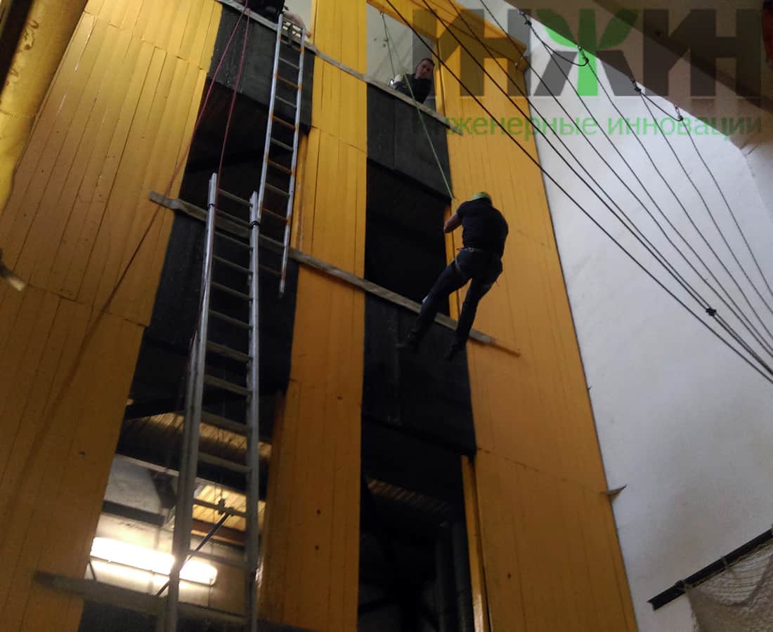 - практическое занятие на учебной башне-имитаторе 3-этажного здания - подъем по пожарной лестнице, спуск при помощи спасательного оборудования;
