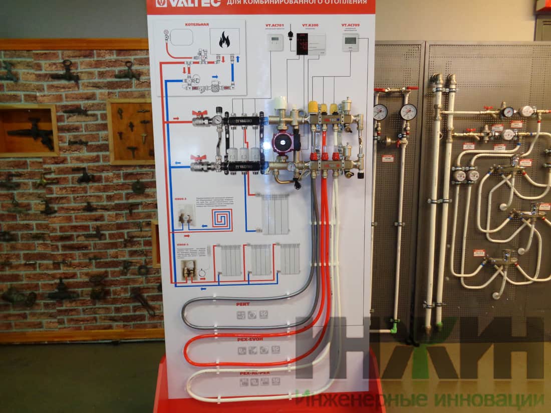 Также было продемонстрировано испытание образцов полимерных труб повышенным давлением при температуре воды в трубах 95 градусов Цельсия. Металлопластиковая труба Valtec, разрушилась только при давлении в 54 атмосферы и температуре 95 градусов. Аналогичные испытания были продемонстрированы для запорной арматуры.