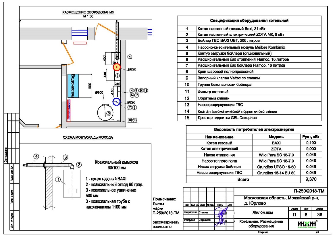 Стоимость проекта отопления и водоснабжения - 19 030 руб., проект котельной бесплатно, объем проекта 36 листов.