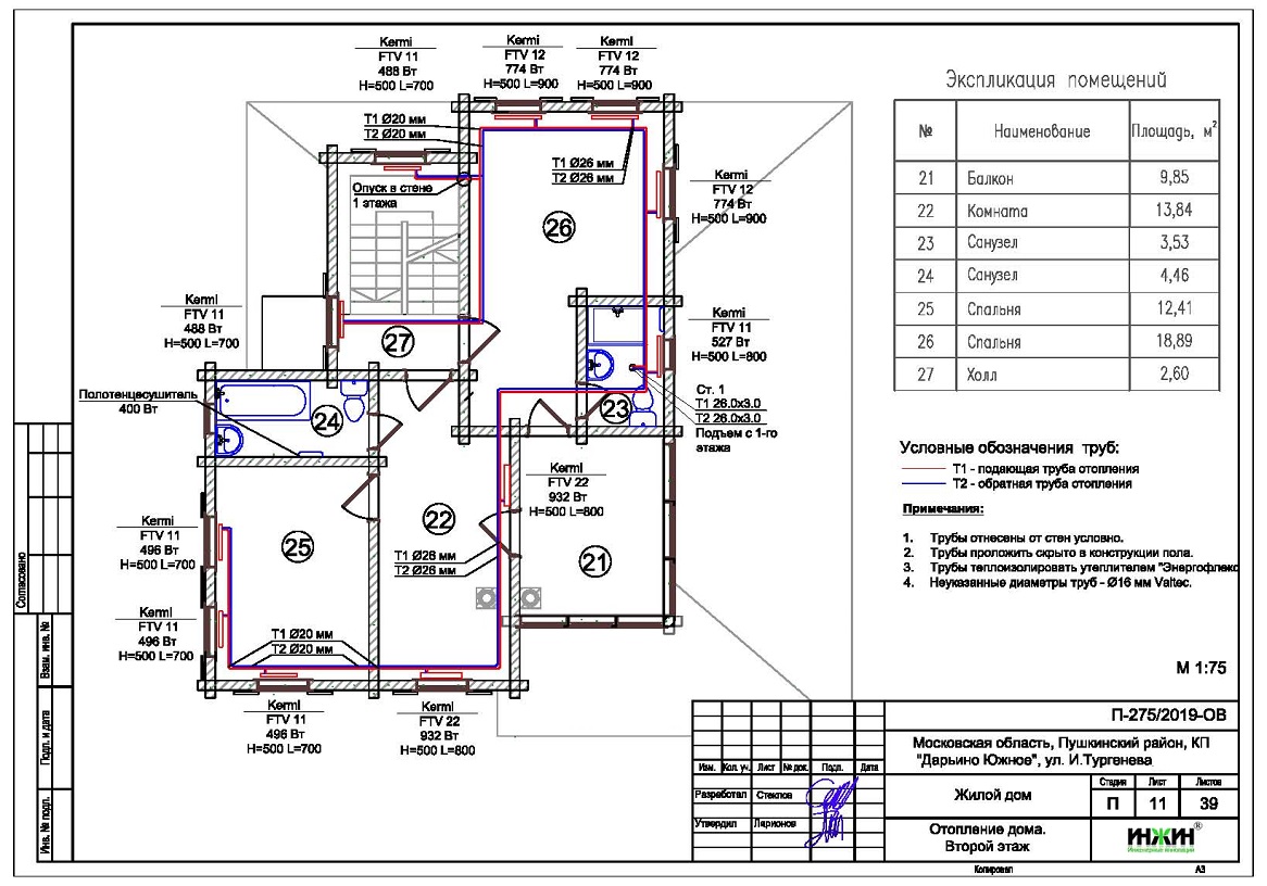 Выполнен проект отопления для дома 136 м.кв.
