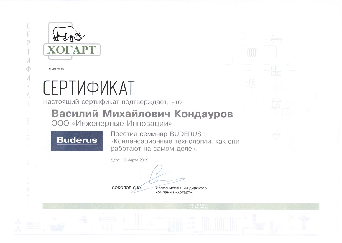 Благодарим представительство Buderus и компанию Хогарт за содержательное обучение, результаты которого будем использовать при проектировании и монтаже котельных и систем отопления с конденсационными газовыми котлами настенного и напольного исполнения.