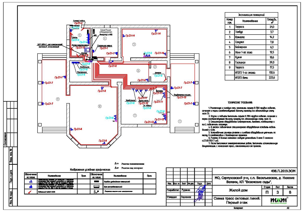 Подробное описание выполненного проекта электрики дома в КП "Вяземские Сады".
