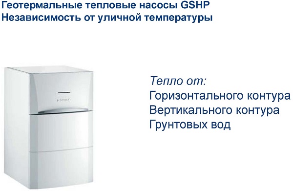 - Геотермальные тепловые насосы De Dietrich GSHP с передачей тепла от горизонтального или вертикального контура, а также от грунтовых вод;