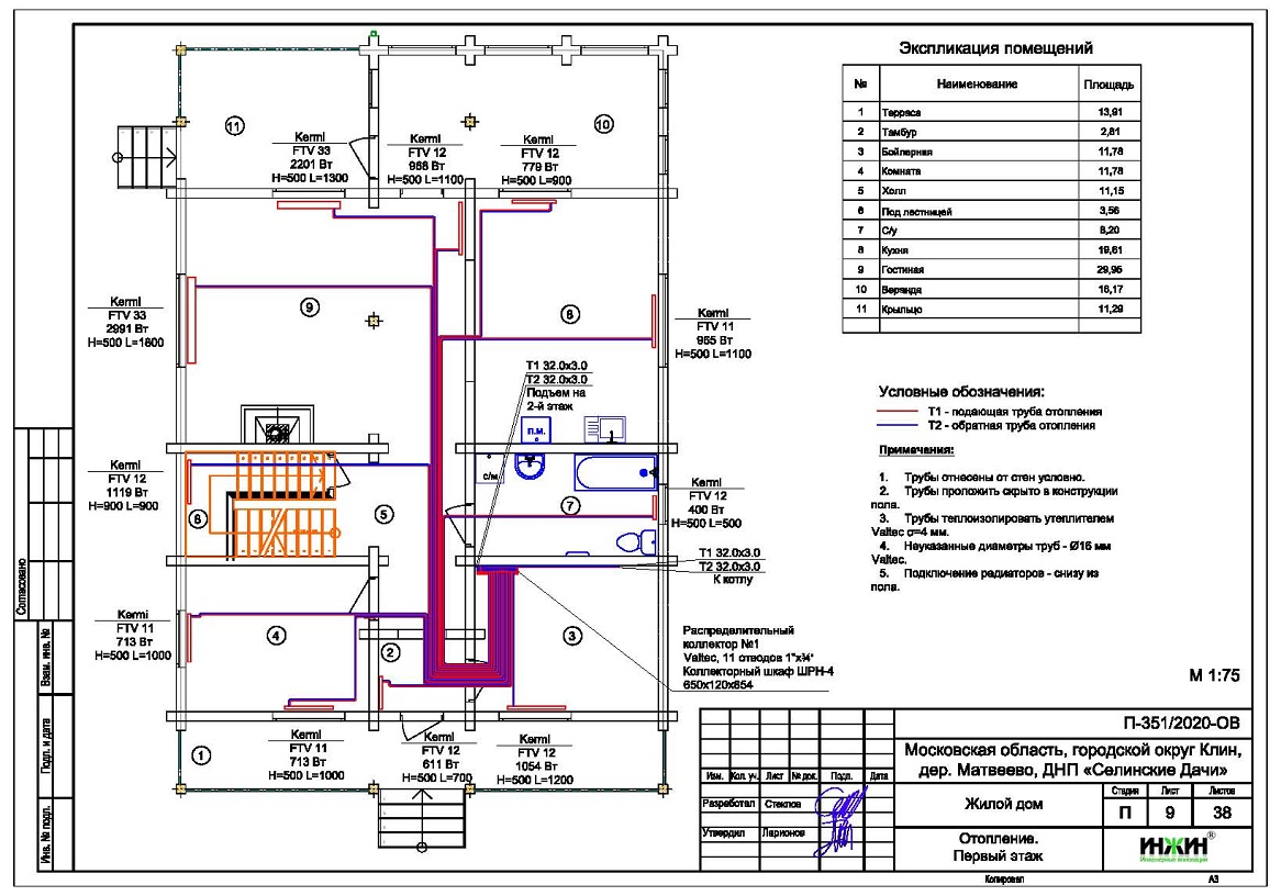 Стоимость проекта отопления водоснабжения и канализации дома в ДНП "Селинские Дачи"- 29 700 руб. со скидкой 10%, проект котельной бесплатно, объем проекта отопления 8 листов.