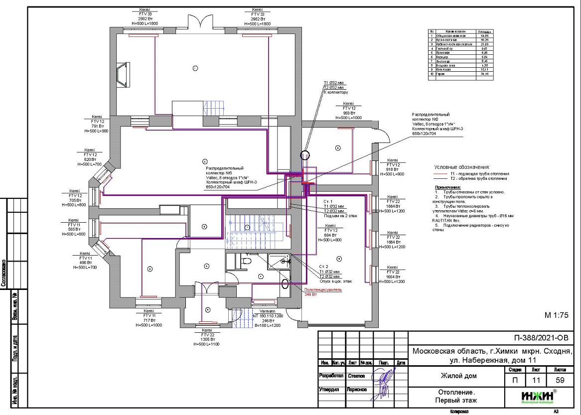 Подробное описание выполненного проекта отопления и водоснабжения дома 524 м.кв. в Сходне.