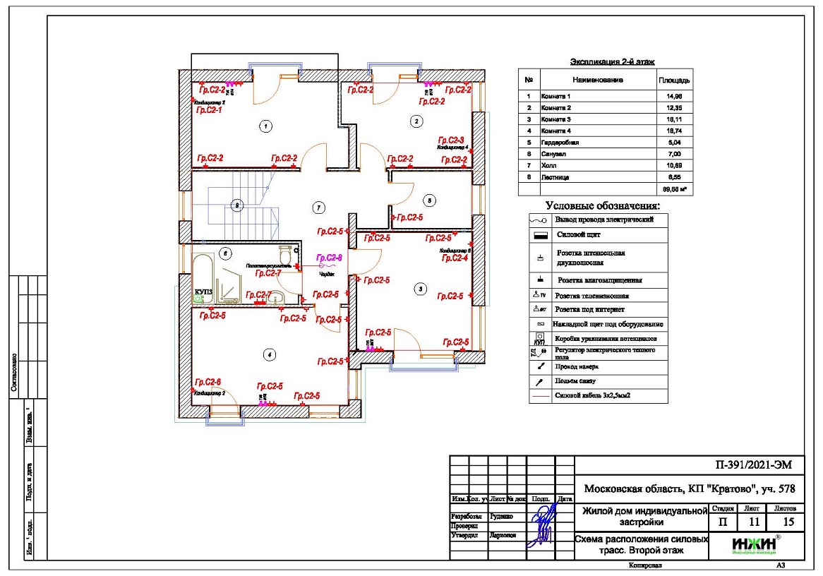Проект электрики дома в КП «Кратово» содержит следующие технические решения: