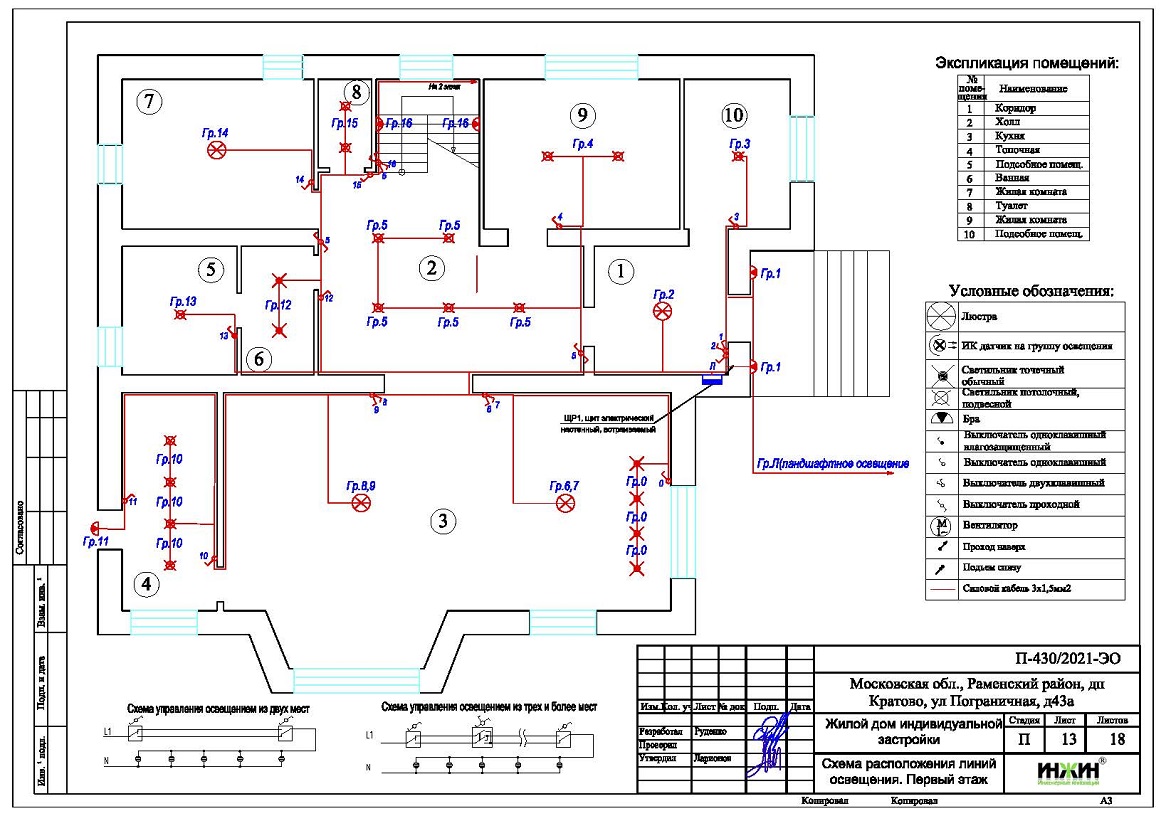 Подробное описание выполненного проекта электрики дома в ДП Кратово.