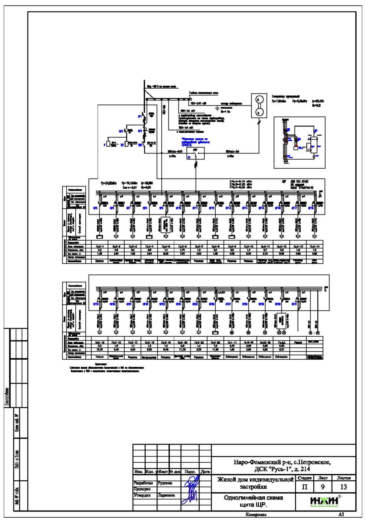 Подробное описание выполненного проекта электрики дома в ДСК «Русь-1».