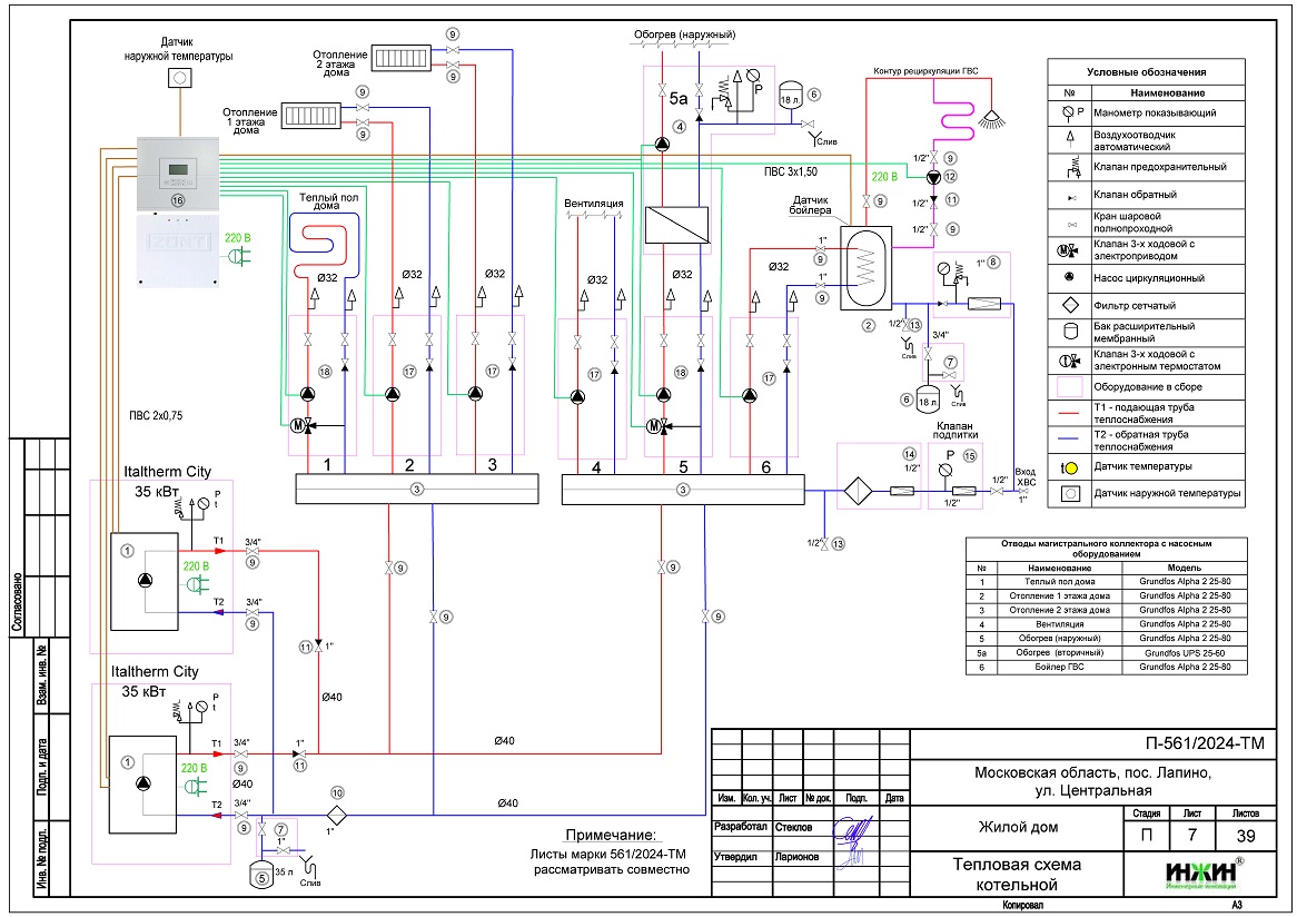 Стоимость проекта отопления и водоснабжения дома в пос. Лапино- 39 483 руб. со скидкой 10%, проект котельной бесплатно, объем проекта 39 листов.