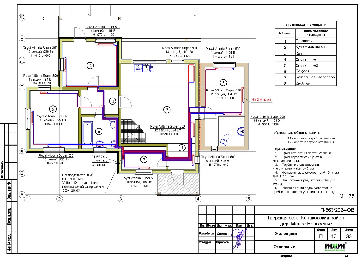 Стоимость проекта отопления и теплого пола дома в дер. Малое НовосельеТверской области- 20 264 руб. со скидкой 10%, проект котельной бесплатно, объем проекта 33 листа.