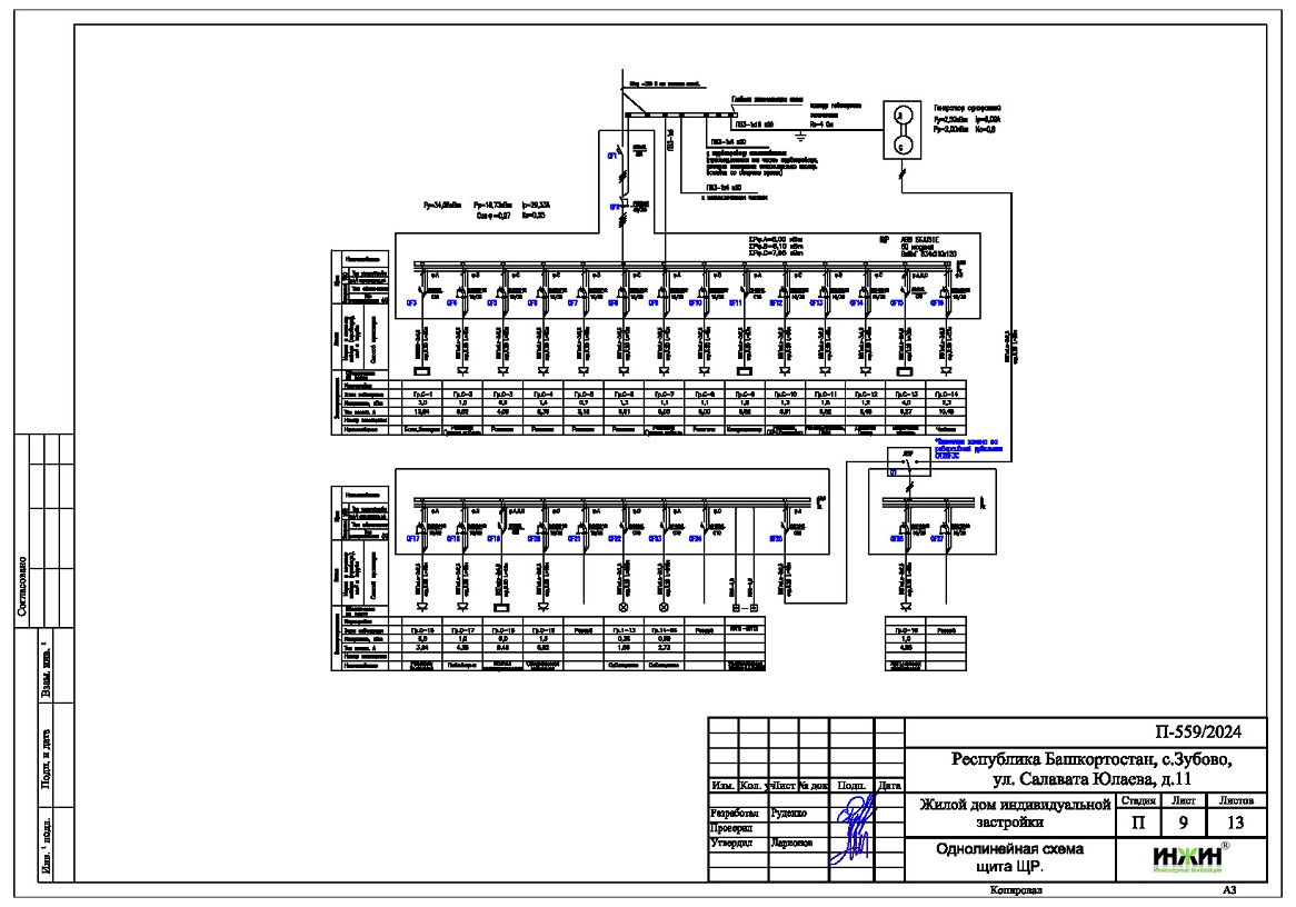 Разработан проект электрики (электропроводки) для дома площадью 179 м.кв., расположенного в с. Зубово, Республика Башкортостан.