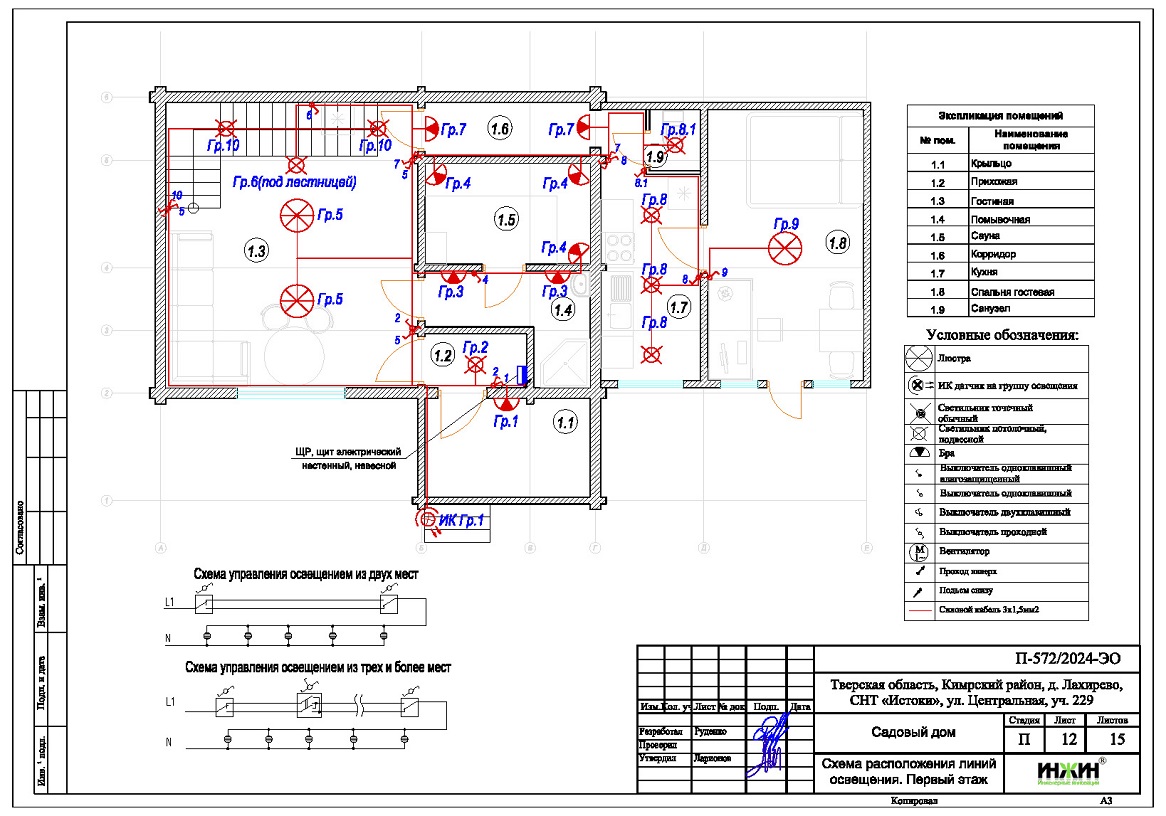 Разработан проект электрики (электропроводки) для деревянного дома площадью 100 м.кв., расположенного в СНТ «Истоки» Тверской области.