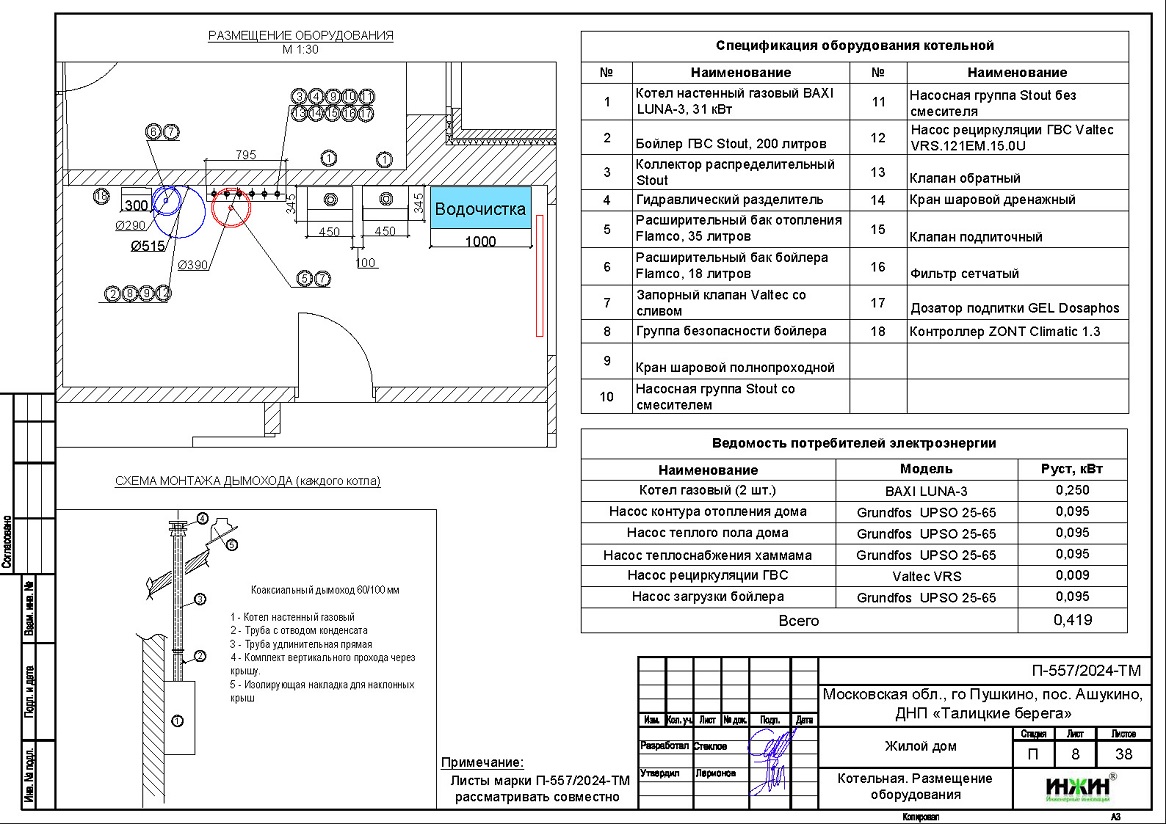 Стоимость проекта отопления и водоснабжения дома в КП "Адмирал"- 41 060 руб. со скидкой 10%, проект котельной бесплатно, объем проекта 38 листов.