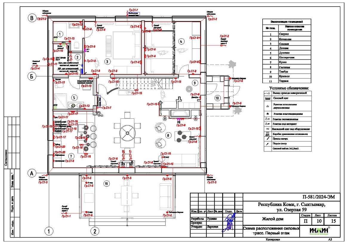 Разработан проект электрики (электропроводки) для дома площадью 203 м.кв., расположенного в г. Сыктывкар, Республика Коми.