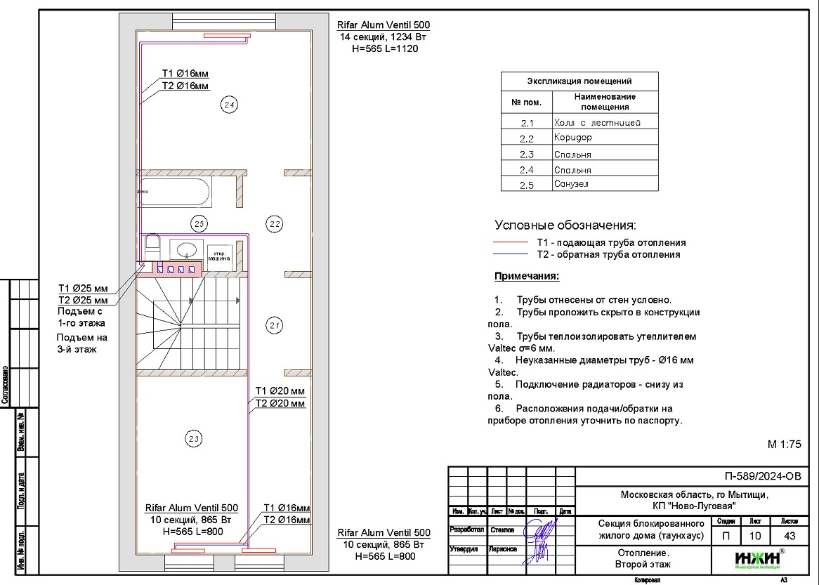 Подробное описание выполненного проекта отопления таунхауса 138 м.кв. в КП "Ново-Луговая" (го Мытищи).