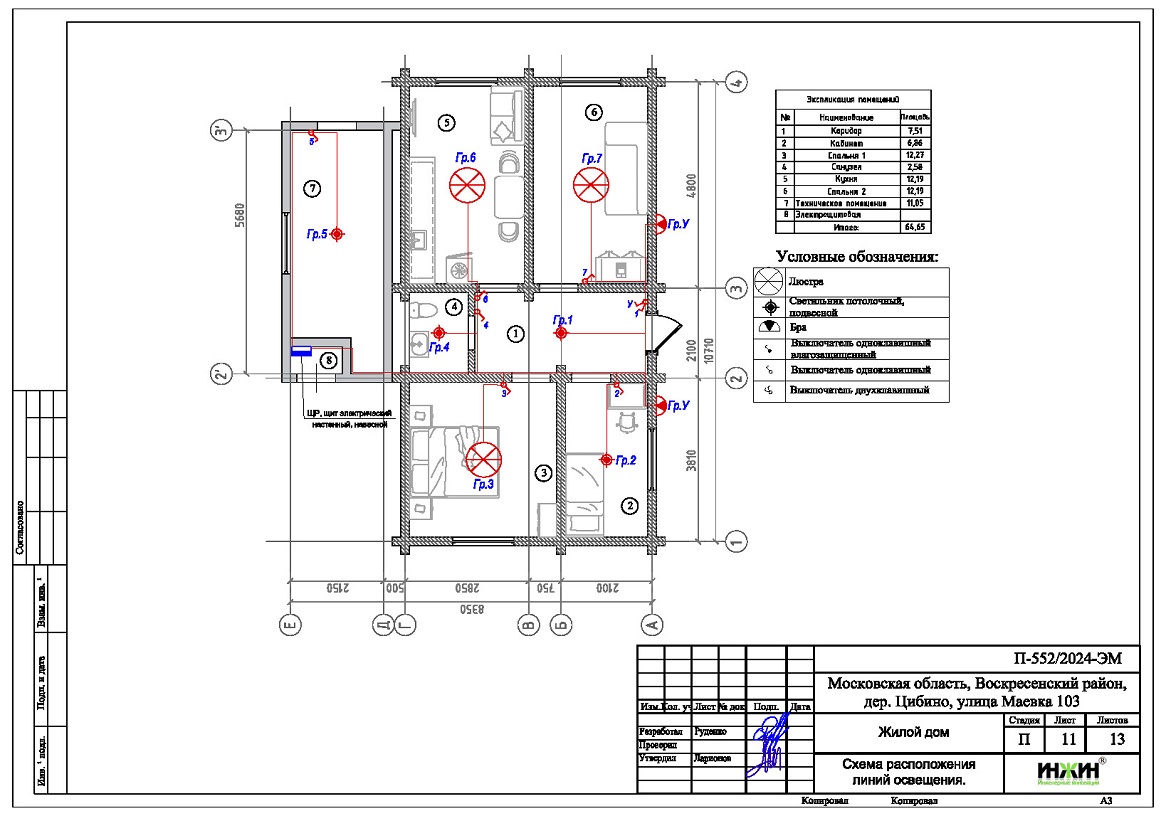 Подробное описание выполненного проекта электрики дома в дер. Цибино.