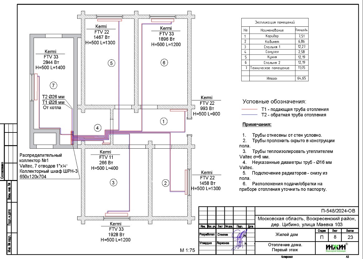 Подробное описание выполненного проекта отопления частного дома 66 м.кв. в дер. Цибино.