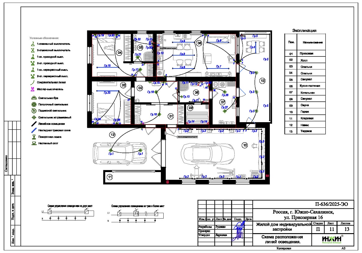 Подробное описание выполненного проекта электрики дома в Южно-Сахалинске.