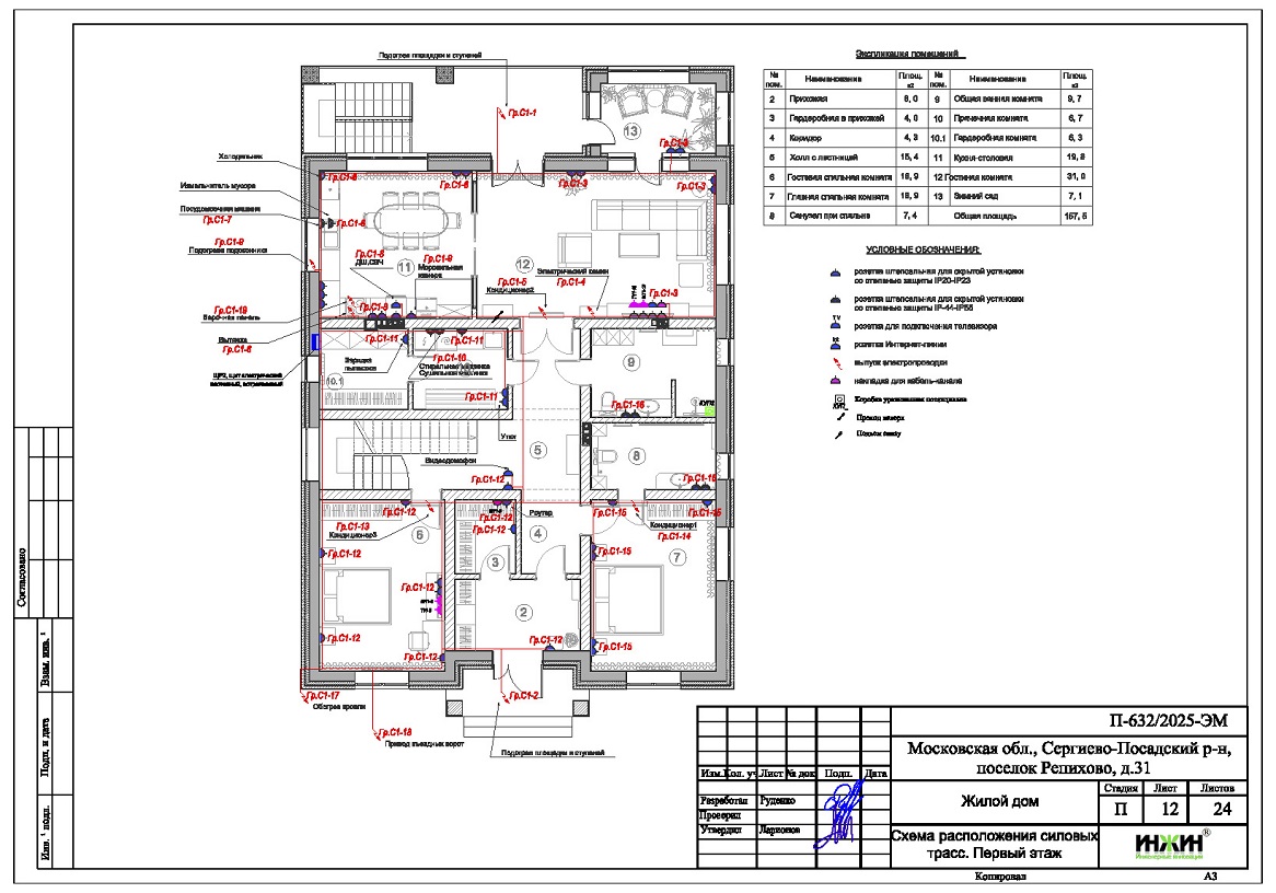 Разработан проект электрики (электропроводки) для газобетонного дома площадью 390м.кв., расположенного в п. Репихово Сергиево-Посадского района Московской области одержит следующие технические решения: