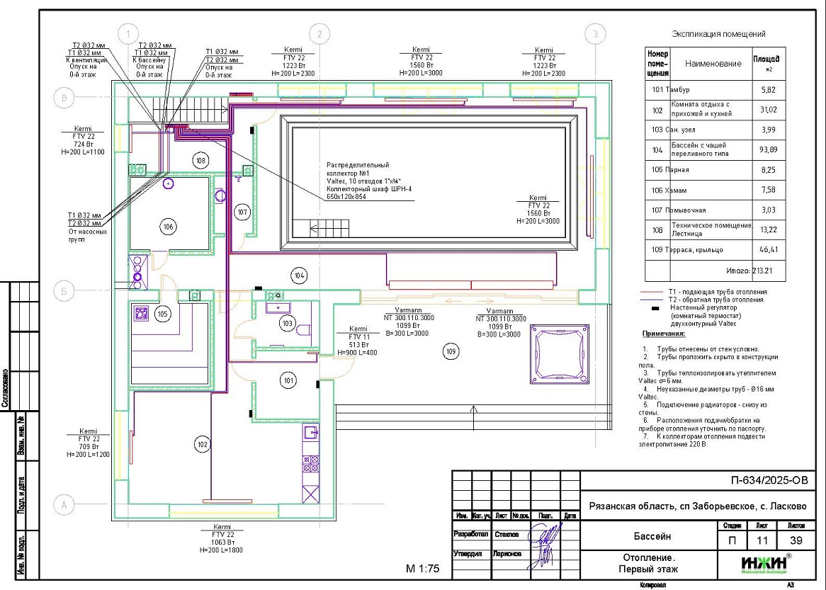 Стоимость проекта отопления и водоснабжения частного бассейна в с. Ласково Рязанской области- 69 145 руб. со скидкой 10%, проект котельной бесплатно, объем проекта 38 листов.