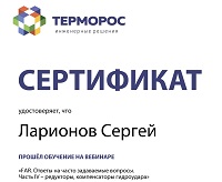 Пройдено обучение на двухдневном вебинаре REHAU "Монтаж инженерных систем отопления, водоснабжения и водоотведения", по окончанию которого пройдено тестирование и получен сертификат монтажника оборудования Rehau.