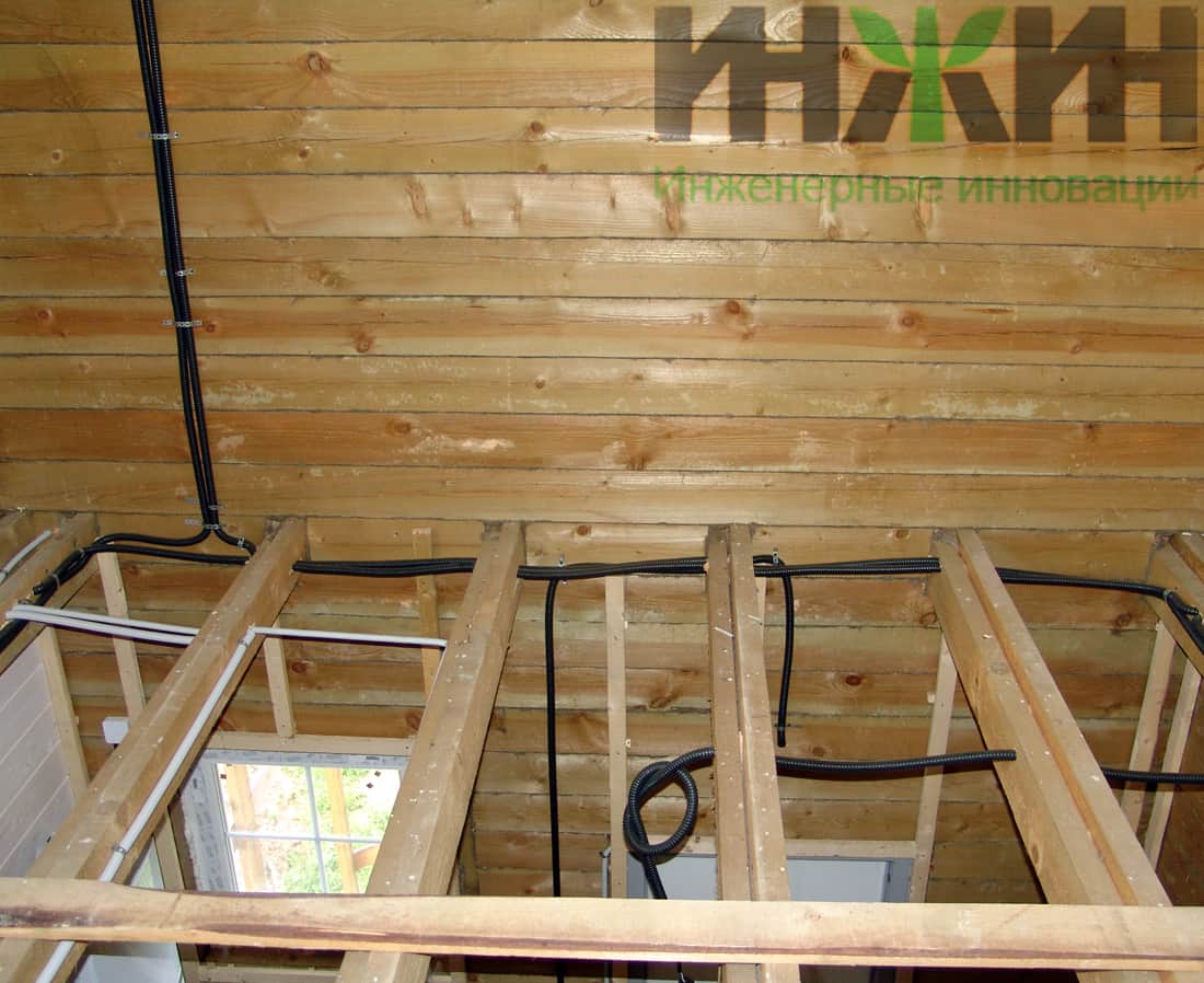 Электрика в деревянном доме, монтаж электропроводки в деревянных балках