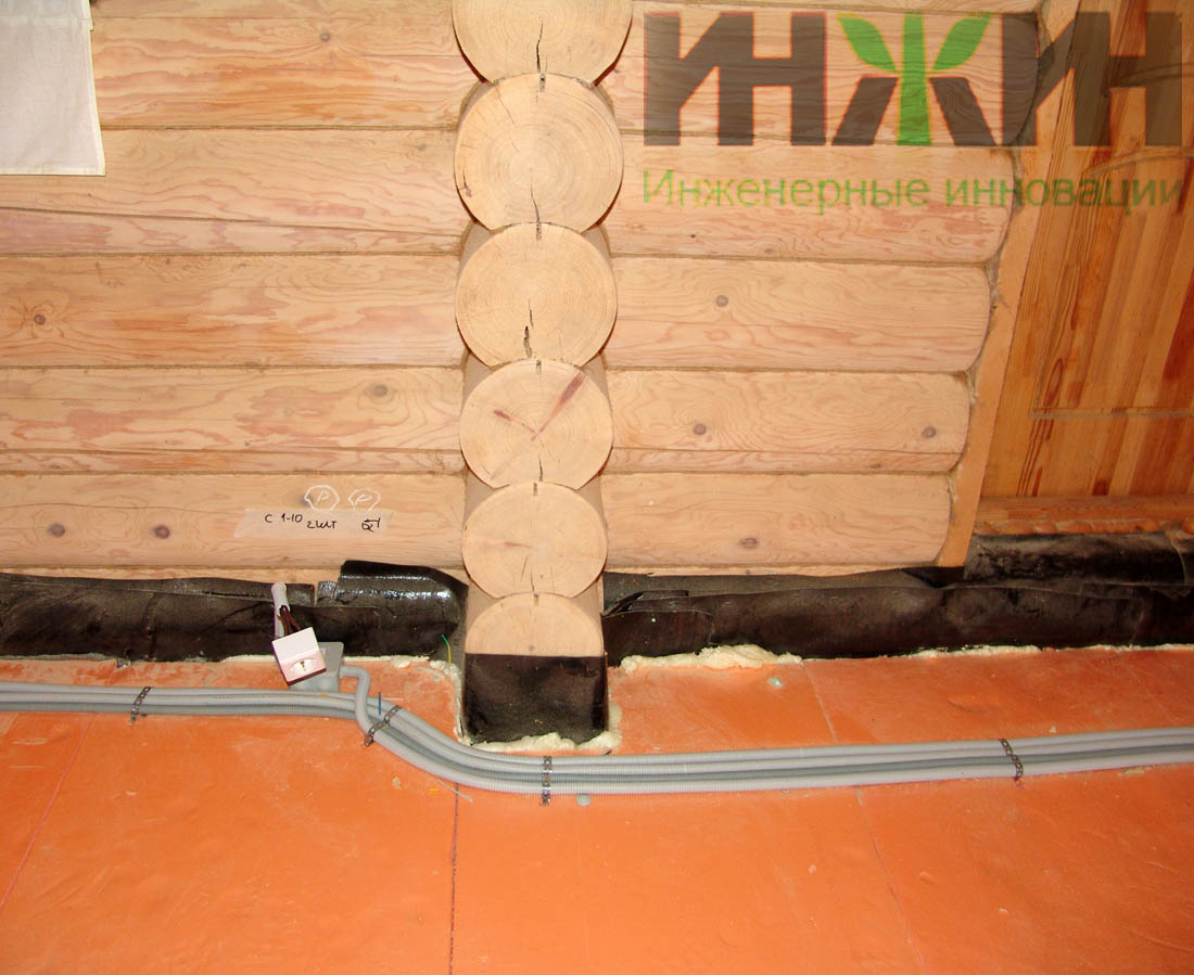 Монтаж электропроводки в полу дома из бревна, для электрических розеток