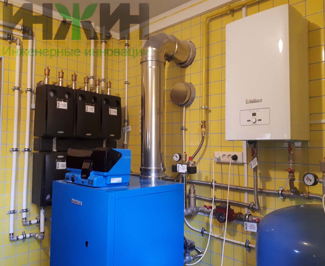 Монтаж котлов Buderus и Vaillant с коллектором Meibes в котельной частного дома в ДНП "Пикник"