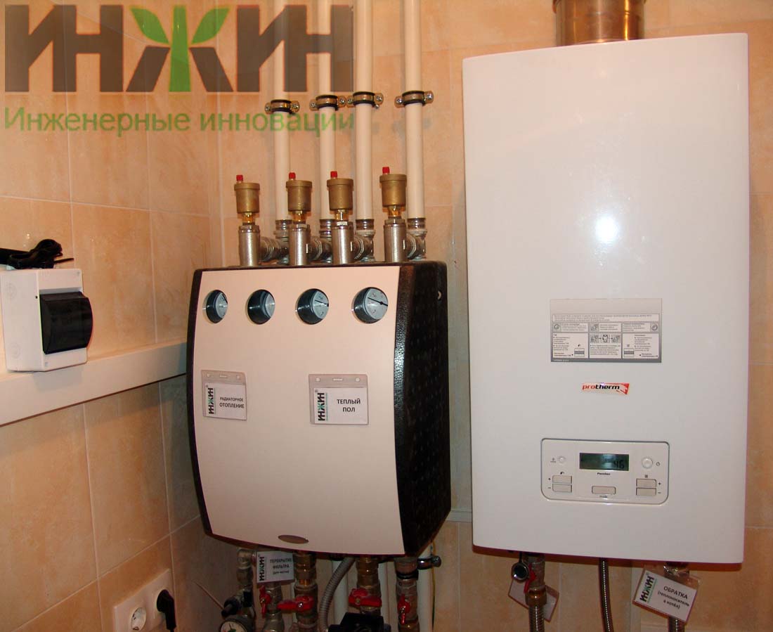 Монтаж настенного газового котла Protherm и модуля Meibes Kombimix в котельной частного дома в КП "Каринское"