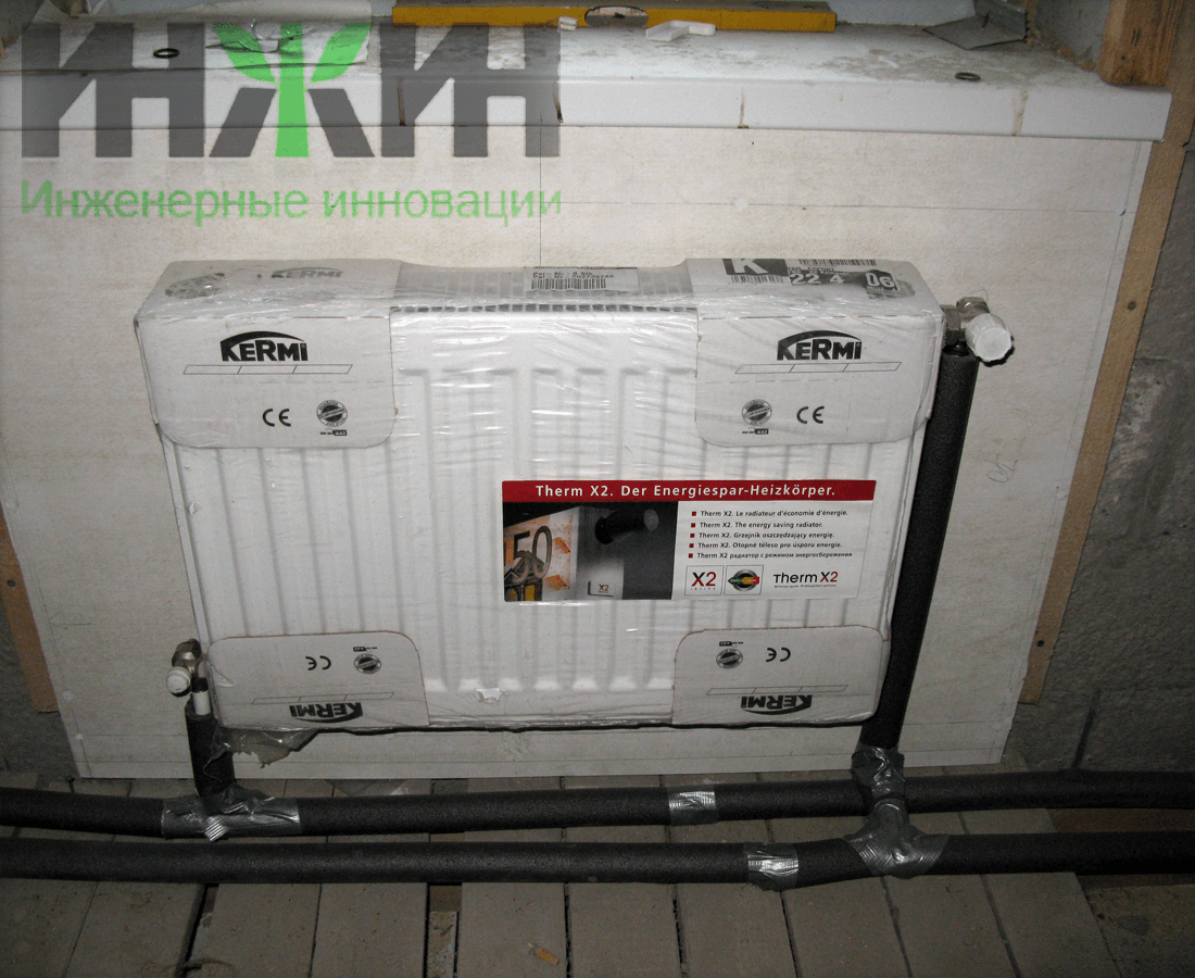 Двухтрубная система отопления частного дома, монтаж радиатора отопления Kermi