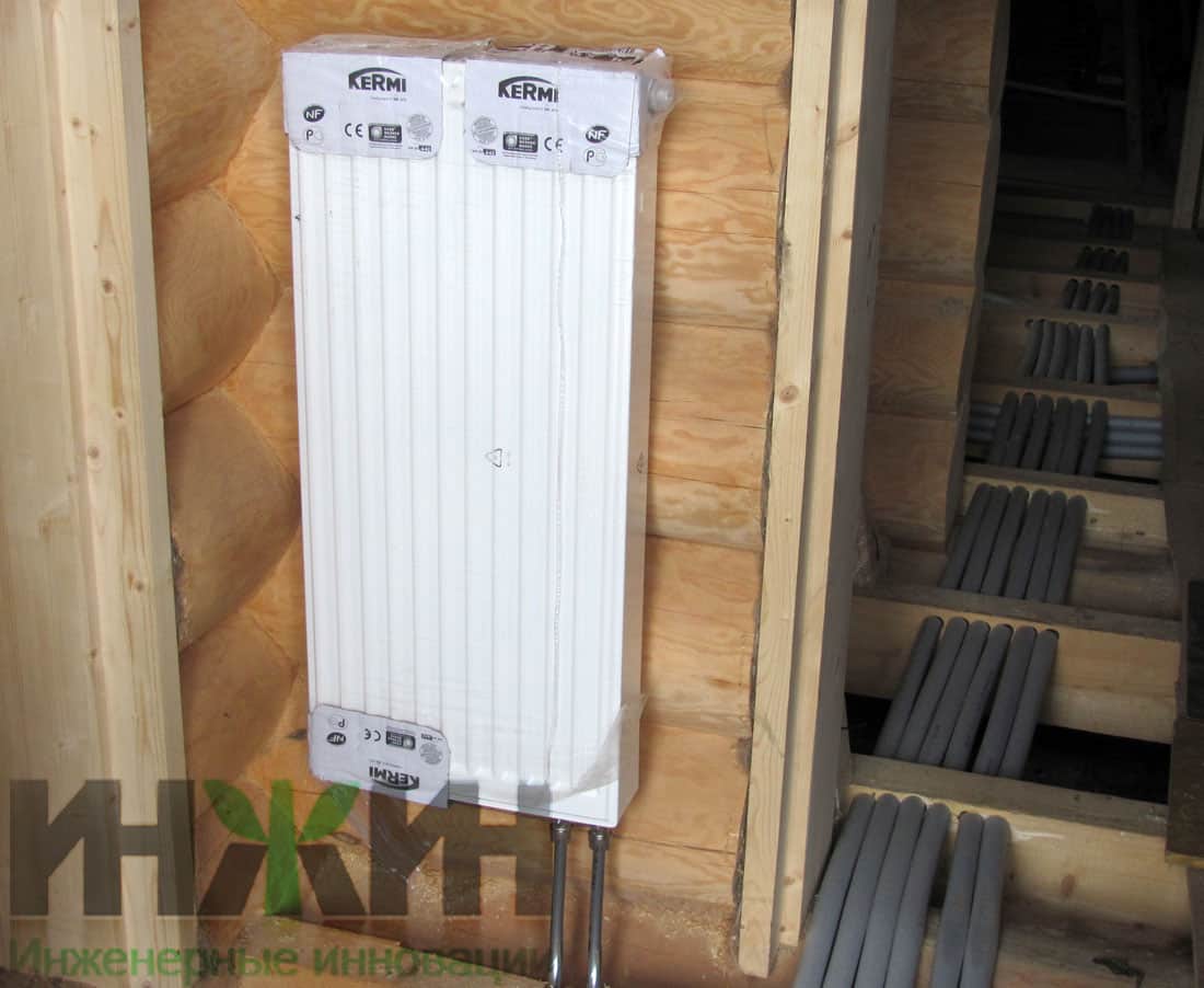 Отопление деревянного дома из бревна, монтаж радиатора Kermi