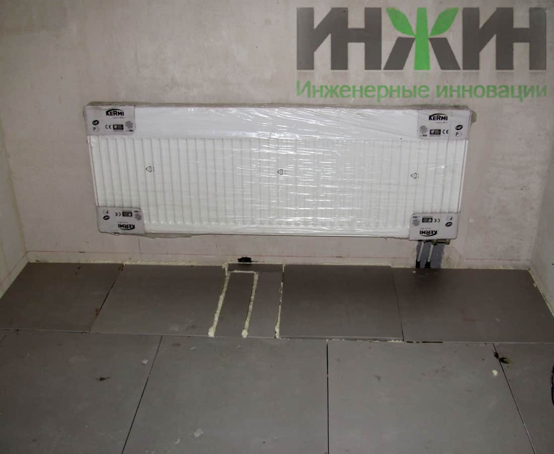 Монтаж радиатора Kermi с нижним подключением на стене, в системе отопления частного дома