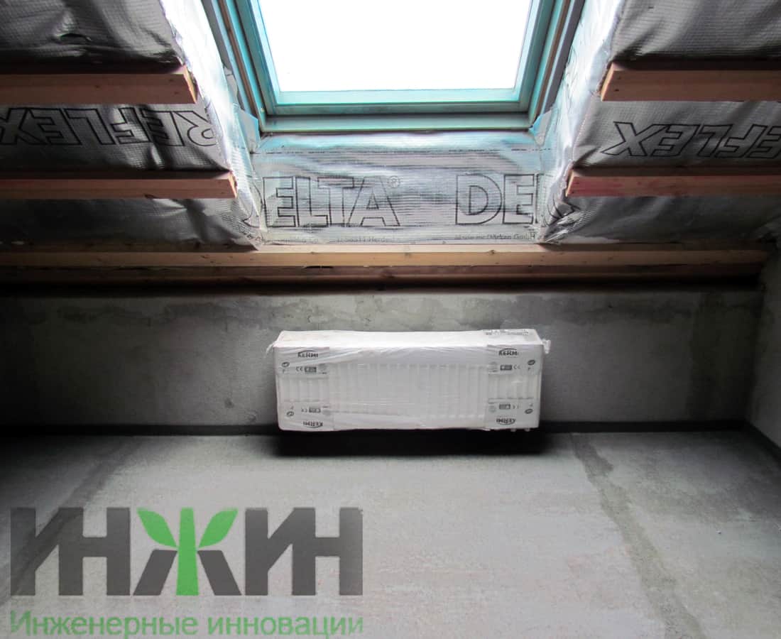 Монтаж радиатора отопления Kermi под окном мансарды частного дома
