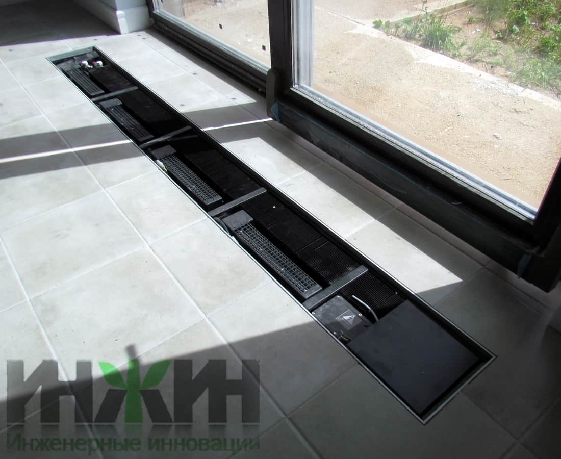 Монтаж встроенного в пол конвектора Varmann Qtherm без решетки, фото монтажа отопления 498
