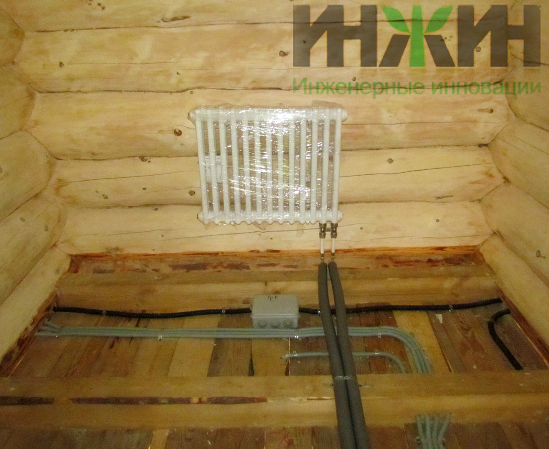 Радиатор отопления Zehnder, монтаж в кладовой деревянного дома