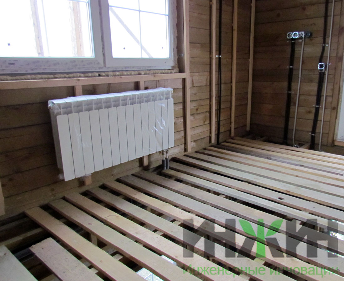 Монтаж отопления деревянного дома, радиатор Rifar на втором этаже