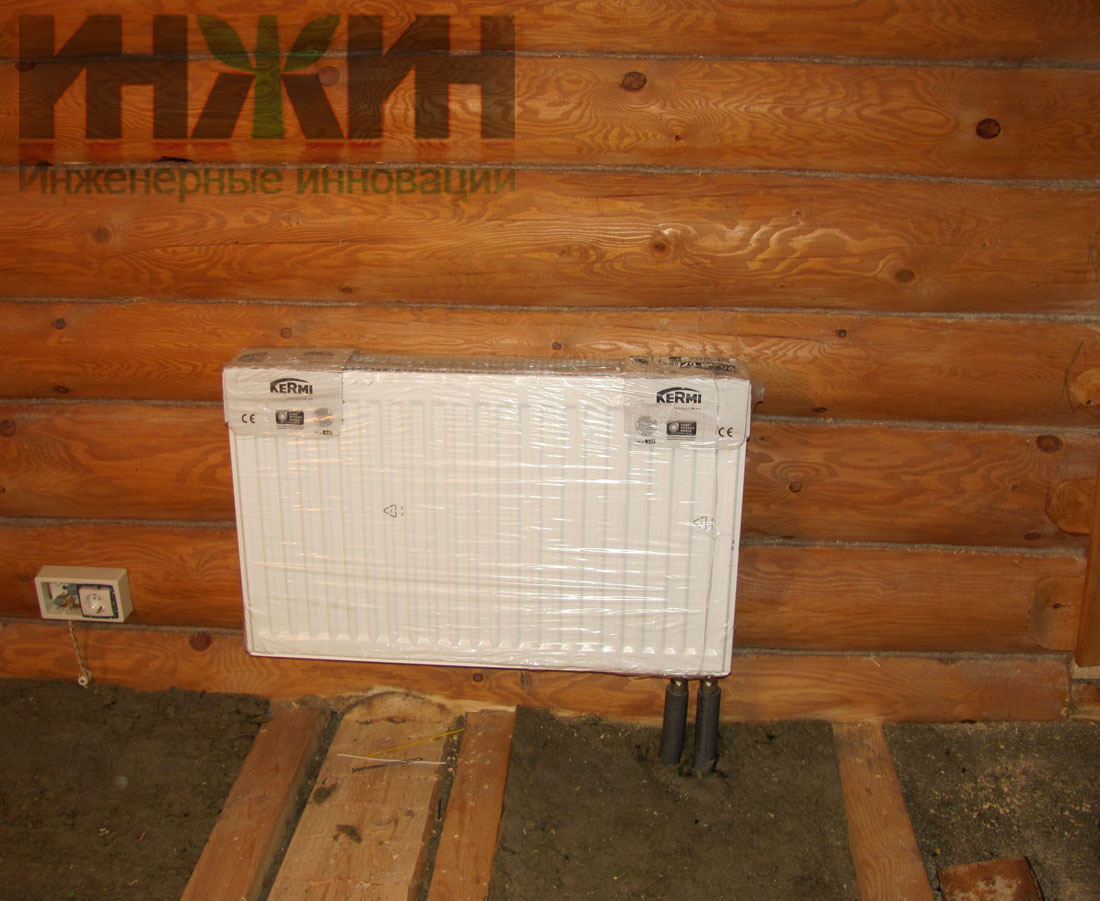 Монтаж радиатора отопления в доме из бревна, фото 591