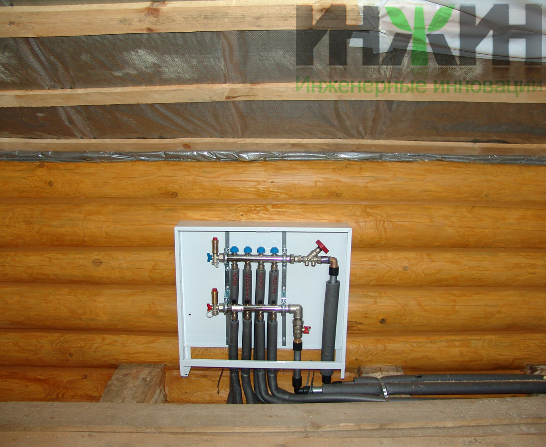 Монтаж отопления, коллекторная схема в деревянном доме из бревна в Московской области, коллектор отопления Rehau, фото 626