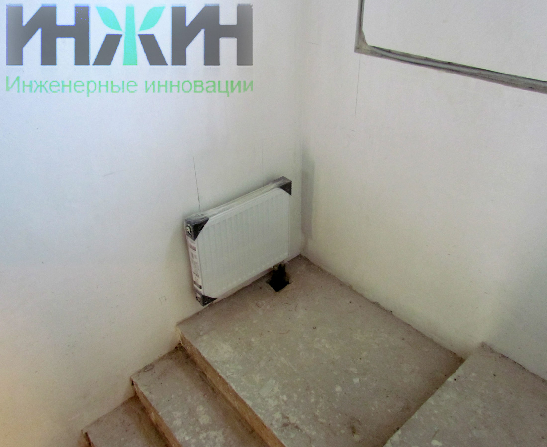 Монтаж отопления в доме из газосиликатных блоков в Московской области, радиатор отопления ROMMER на лестнице, фото 662