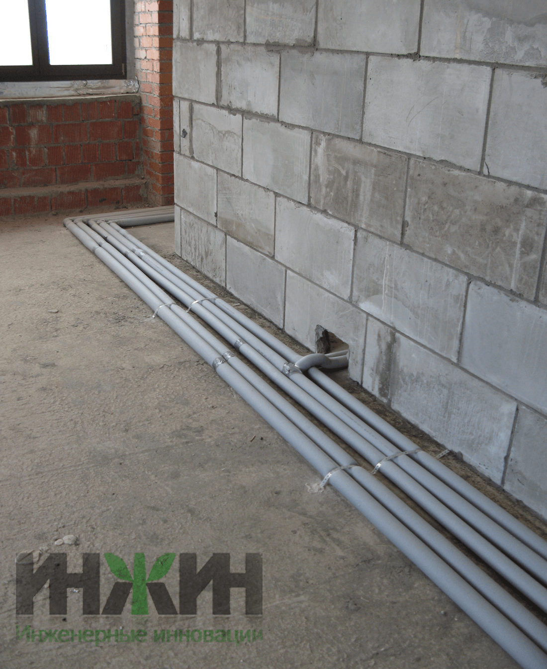 Монтаж магистральных труб системы отопления в кирпичном доме КП "Грин Хилл"