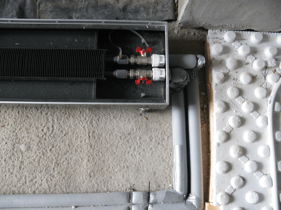 · Радиаторное отопление является дополнительным, используется два встроенных в пол конвектора Изотерм (Россия), установленных в зоне панорамного остекления;