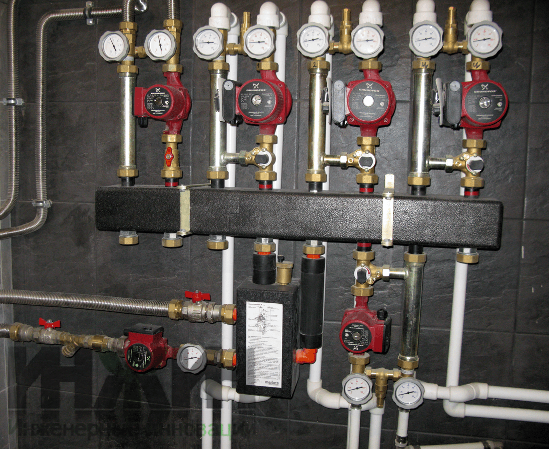 - Выполнено пять контуров котельной – теплый пол (3 контура), радиаторное отопление, горячее водоснабжение;