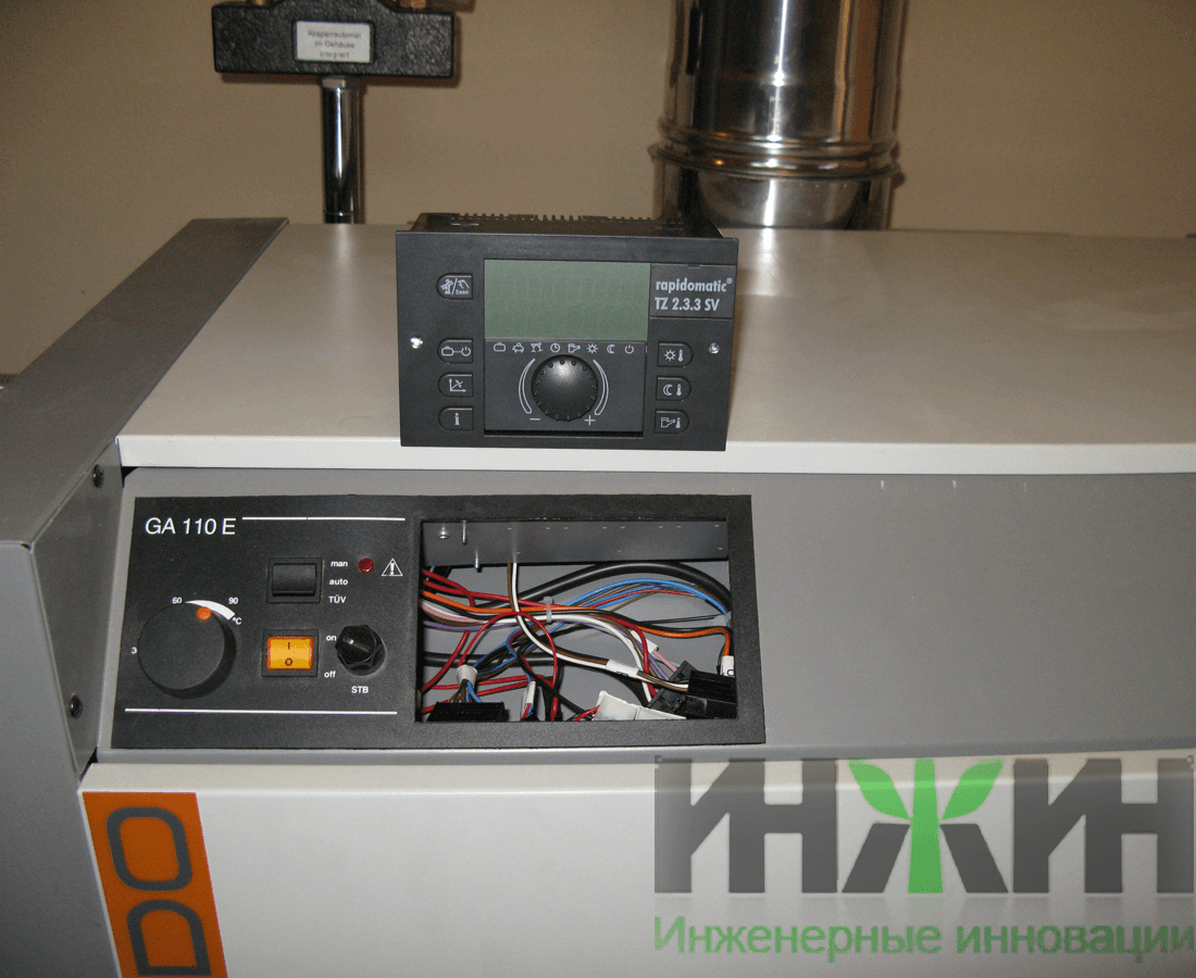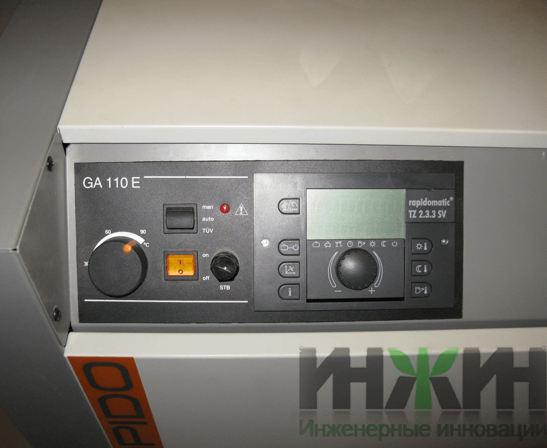 - Установлена втоматика котельной на основе штатных устройств Rapido (Германия) - Rapidomatic TZ2.3.3S (основной блок) и настенного регулятора Comformatic T.