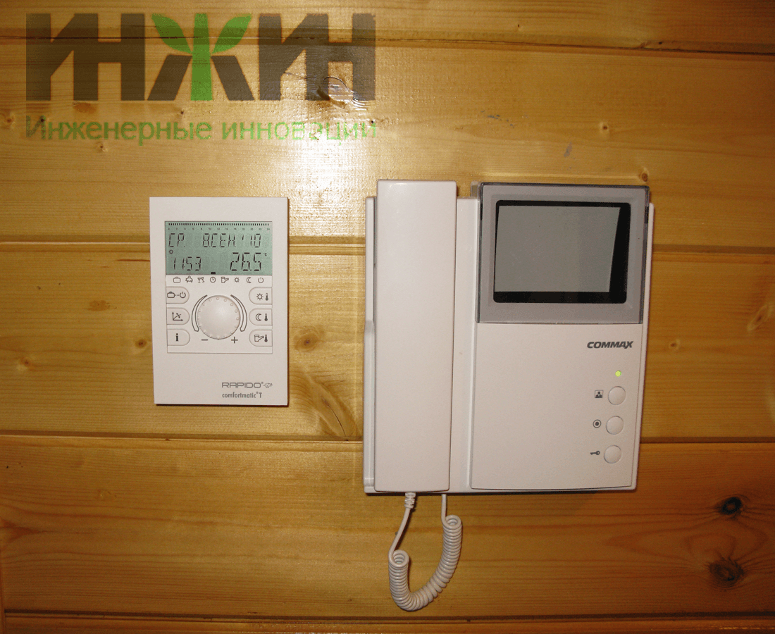 Основной блок автоматики установлен в лицевую панель котла, т.е., находится в помещении котельной (в гараже). Настенный регулятор Comformatic T установлен в доме, для обеспечения удобства управления оборудованием, находящимся вне помещений дома.