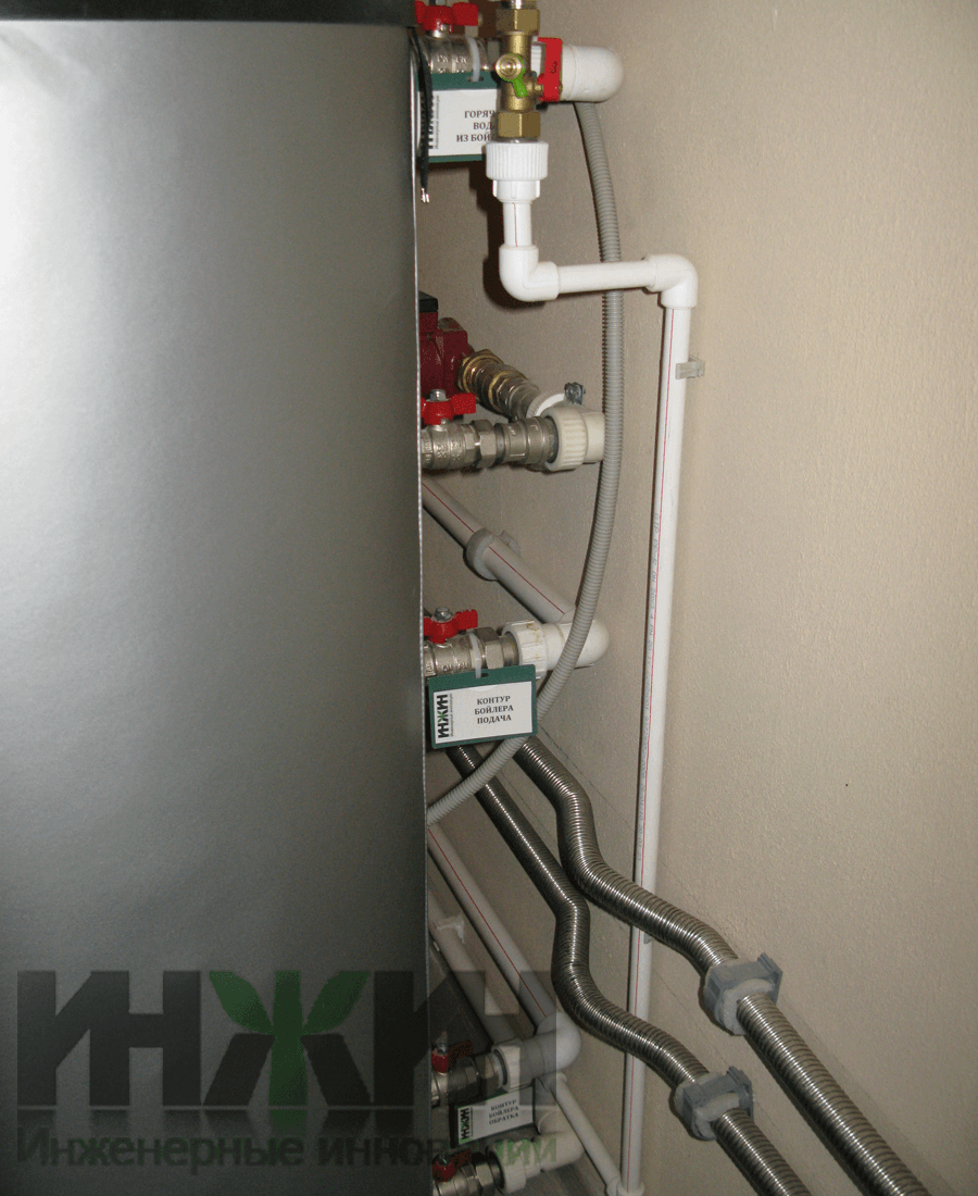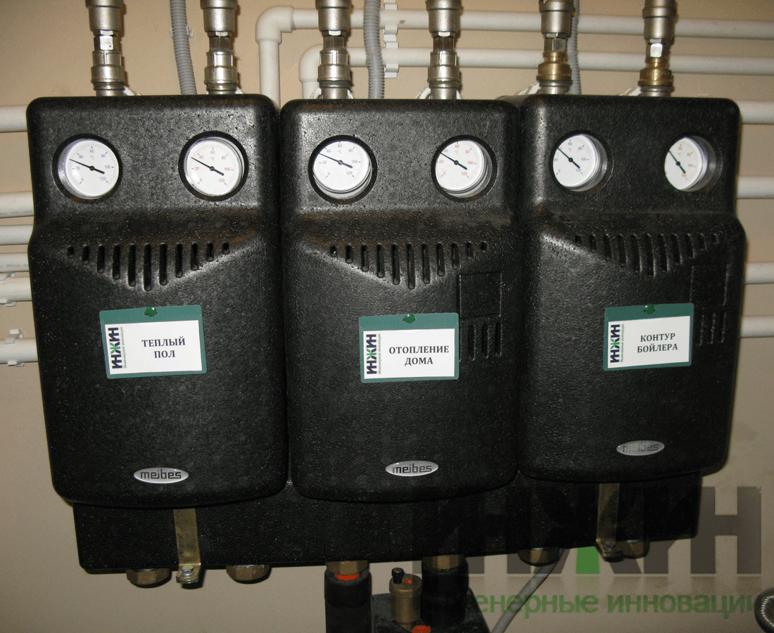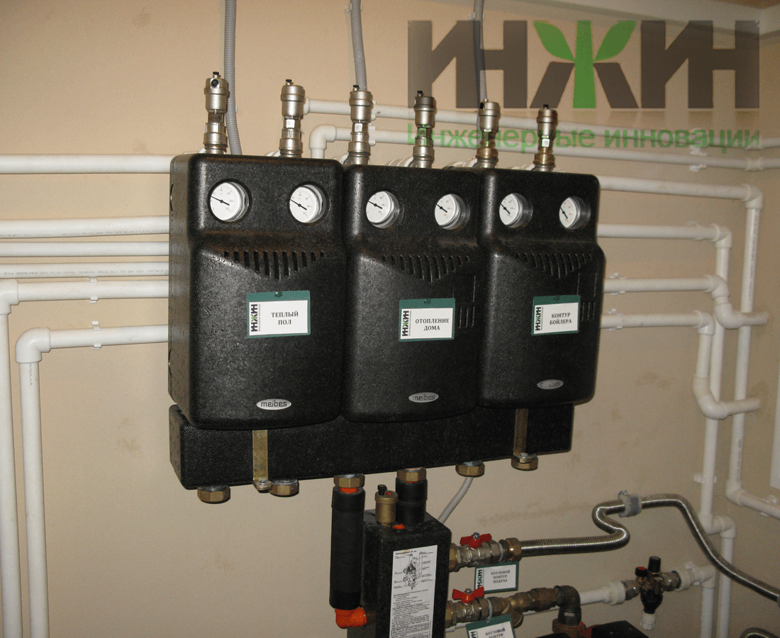 - Монтаж распределительного коллектора котельной с насосно-смесительными узлами Meibes (Германия), заводской готовности;