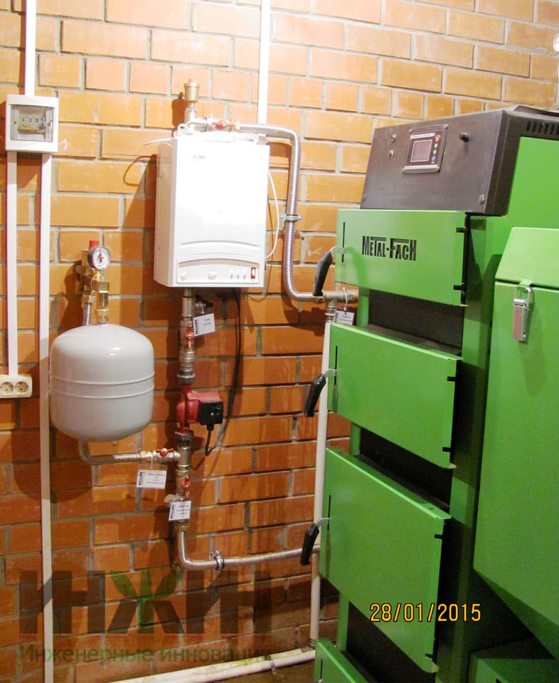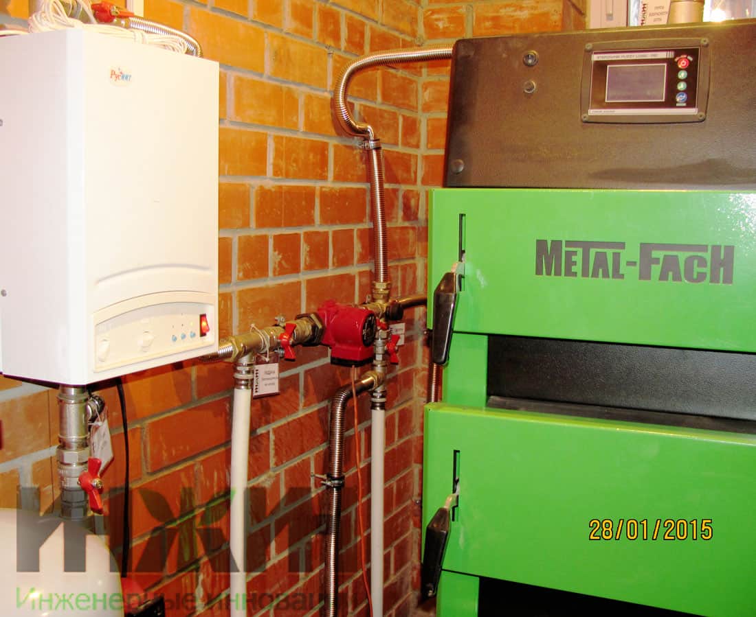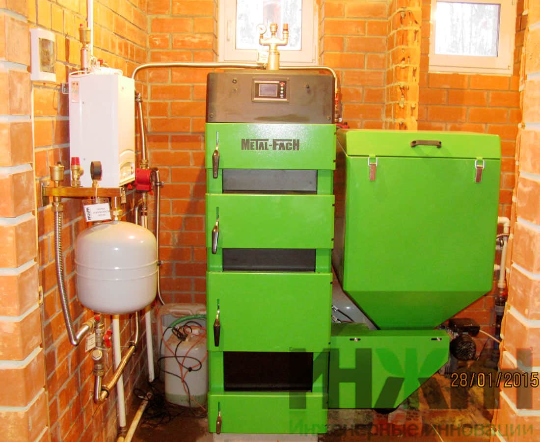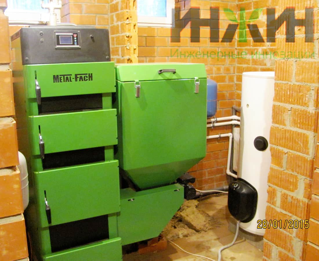 - Выполнена установка и подключение котла напольный пеллетный со стальным теплообменником Metal Fach SD DUO BIO мощностью 38 кВт (поставка Заказчика);