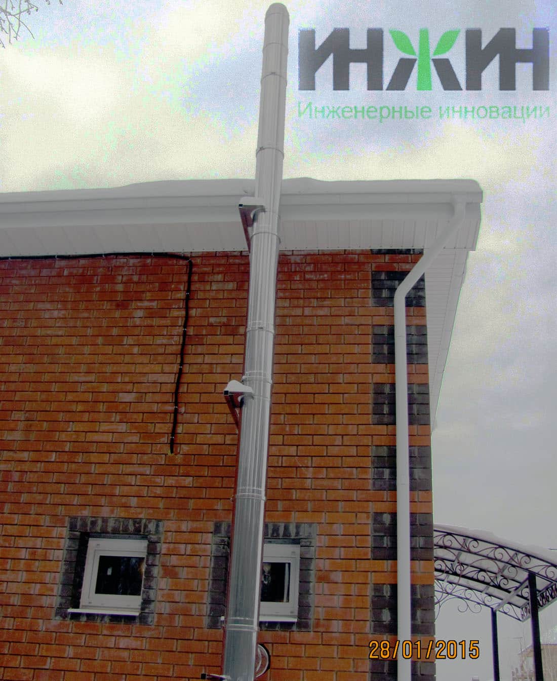 - Смонтированы трубы дымоходные стальные Rosinox в наружном исполнении (по наружной стене дома);